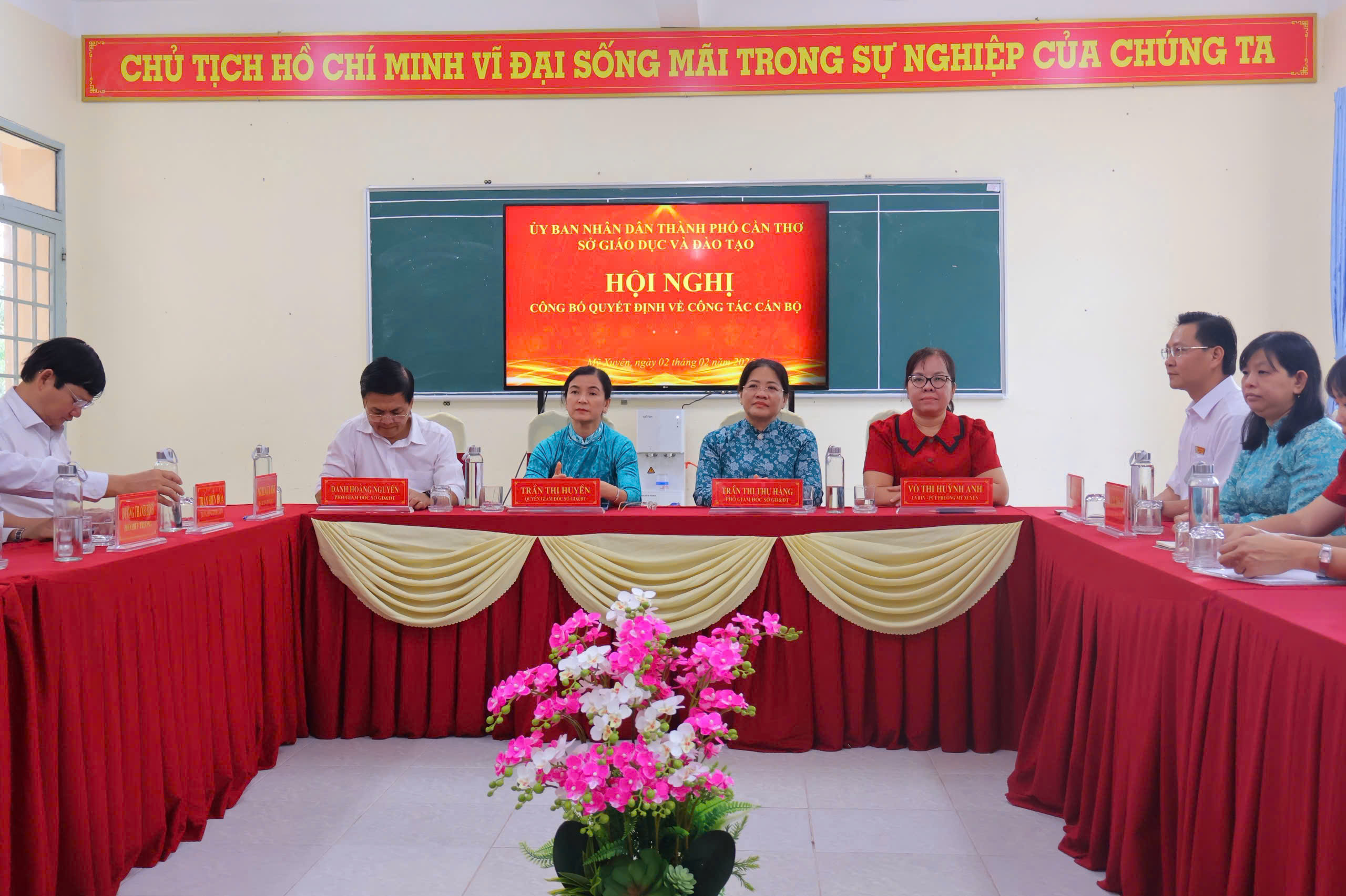 Đến dự và chủ trì hội nghị có bà Trần Thị Huyền, Quyền Giám đốc Sở Giáo dục và Đào tạo TP Cần Thơ; bà Trần Thị Thu Hằng, Phó Giám đốc Sở Giáo dục và Đào tạo TP Cần Thơ; ông Danh Hoàng Nguyên, Phó Giám đốc Sở Giáo dục và Đào tạo TP Cần Thơ; cùng đại diện lãnh đạo các phòng chuyên môn thuộc Sở. Về phía địa phương có bà Võ Thị Huỳnh Anh, Ủy viên Ban Thường vụ - Phó Chủ tịch UBND phường Mỹ Xuyên. Về phía nhà trường có ông Kha Vĩnh Huy, Đảng ủy viên phường Mỹ Xuyên, Bí thư Đảng ủy - Hiệu trưởng; bà Quách Tố San, Đảng ủy viên - Phó Hiệu trưởng, cùng toàn thể cán bộ cốt cán, tổ trưởng chuyên môn, tổ trưởng văn phòng và thư ký hội đồng trường.
