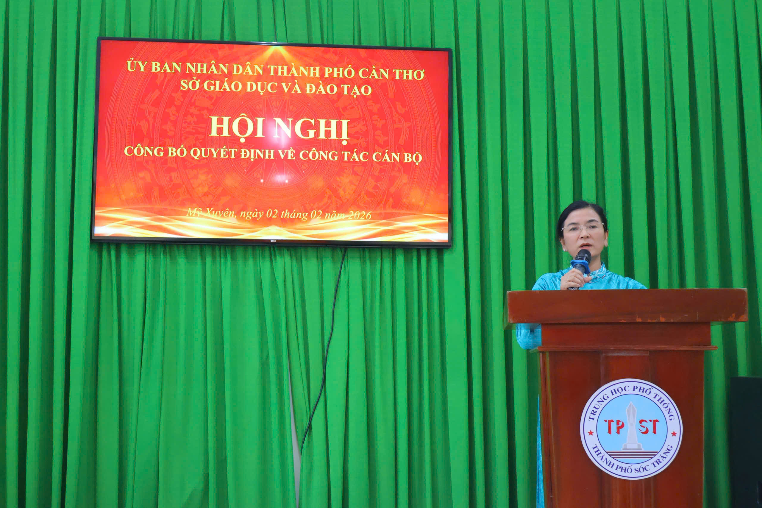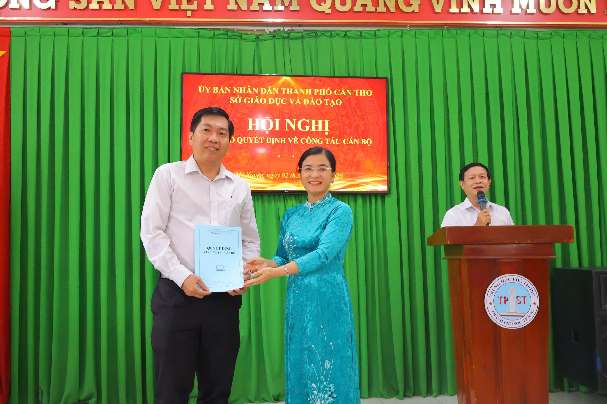 Chiều ngày 02/02/2026, tại trường THPT thành phố Sóc Trăng long trọng tổ chức Hội nghị triển khai Quyết định của Giám đốc Sở Giáo dục và Đào tạo thành phố Cần Thơ về công tác cán bộ, nhằm kiện toàn tổ chức bộ máy quản lý nhà trường theo đúng quy trình, quy định hiện hành.