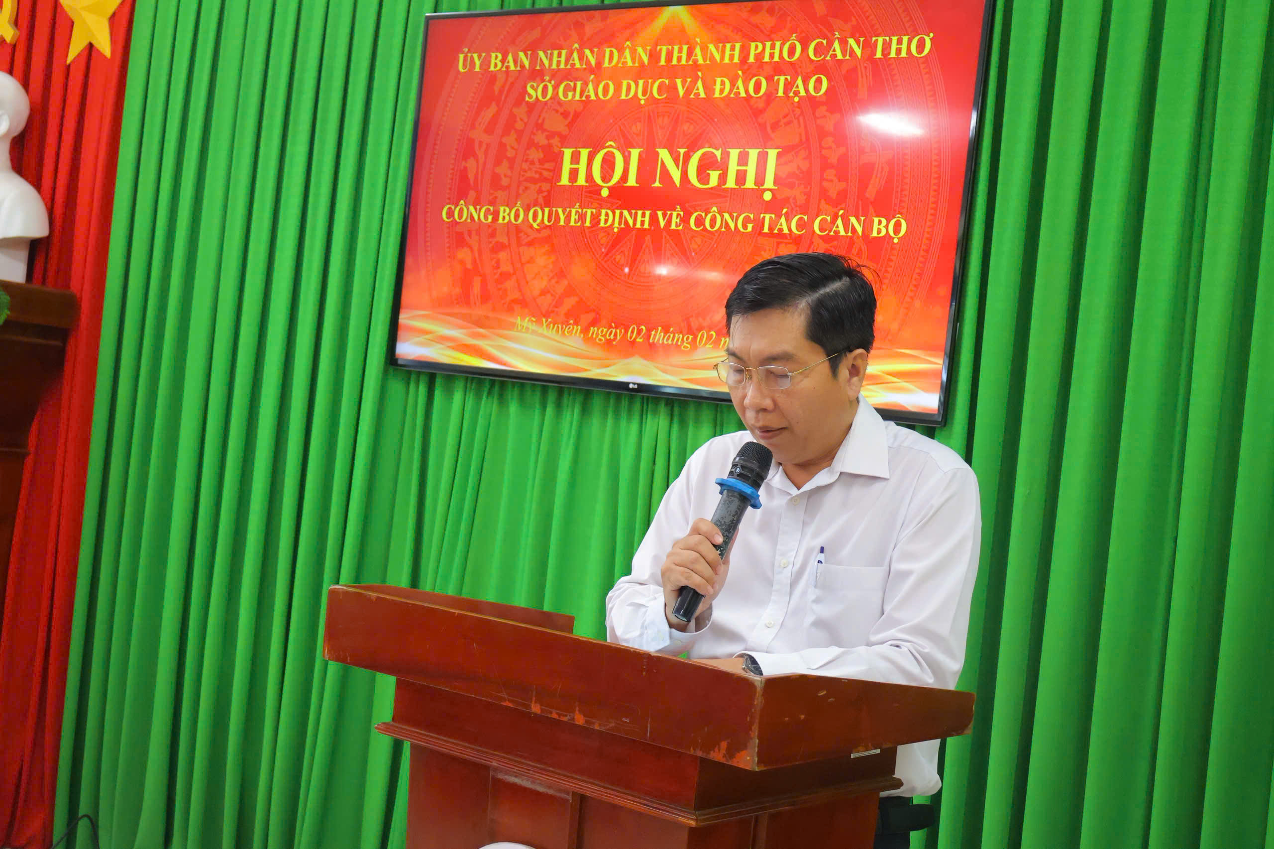 Tại hội nghị, Ông Nguyễn Hữu Định, Phó Trưởng phòng Tổ chức Cán bộ Sở Giáo dục và Đào tạo đã công bố Quyết định của Giám đốc Sở về điều động, bổ nhiệm cán bộ quản lý đối với ông Dương Thanh Bình. Sau khi nhận quyết định, đồng chí được bổ nhiệm đã phát biểu cảm nghĩ, bày tỏ sự trân trọng đối với sự tin tưởng của lãnh đạo Sở Giáo dục và Đạo tạo thành phố Cần Thơ và cam kết nỗ lực phấn đấu, cùng tập thể nhà trường hoàn thành tốt nhiệm vụ được giao.